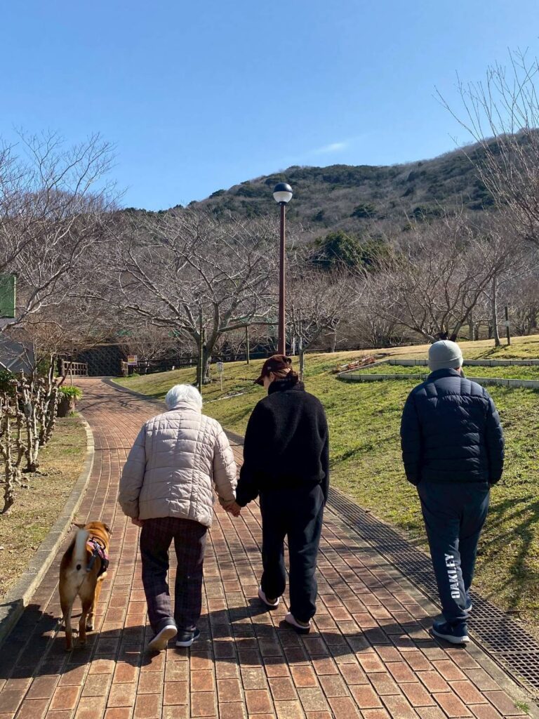 室内とは違い、外の空気を感じながら歩くことで気分転換にもなり、皆さま自然と表情が明るくなります。